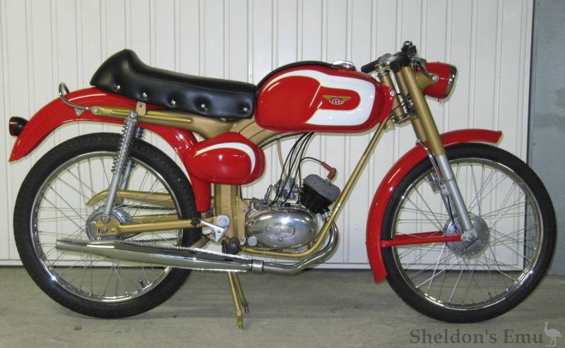 The Bologna factory began manufacture of 49cc lightweights in 1949. They also built a lightweight motorcycles, mofas and miniscooters.