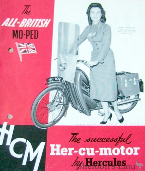 1956 The firm produced a moped fitted with a 49cc JAP engine, which, to begin with, sold as the Grey Wolf. Soon this name was changed to Her-cu-motor. The two-speed gearbox and bevel box with chain final-drive had an engine with the crankshaft set along the machine. The unit hung from a spine frame with leading-link front forks. The overall effect was quite sleek.