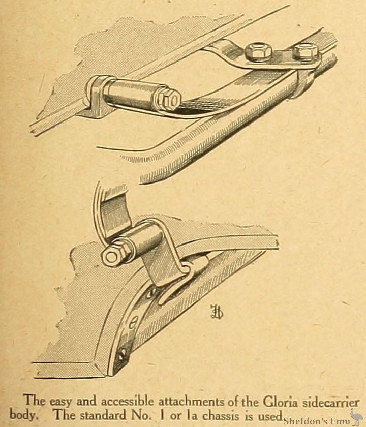 Their 1922 catalogue speaks of Triumph motorcycles with Gloria sidecars, and those of 1928 and 1929 advertise "Triumph-Gloria" sidecar combinations.