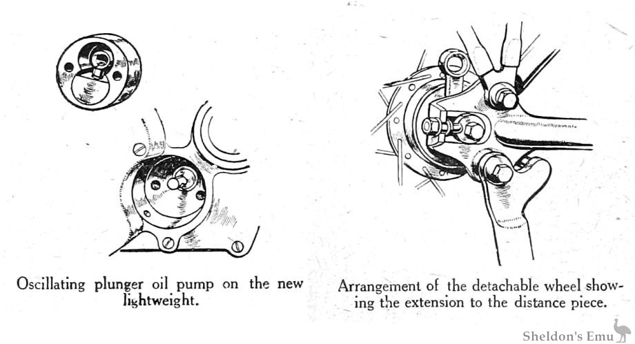 Between the crankshaft and the gear shaft lies an intermediate pinion which is utilised to drive a most ingenious form of oil pump. In construction the pump is of the oscillating plunger type and is so constructed as to avoid external pipes.