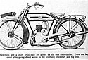 67.35x70 mm. (249 c.c); single cyl. two-stroke; petroil lubrication; Triumph carb.; chain-driven mag.; 2-speed gear; clutch and kick-starter; chain-belt drive; 24x2½in. tyres. Price: Solo. £52 10s.