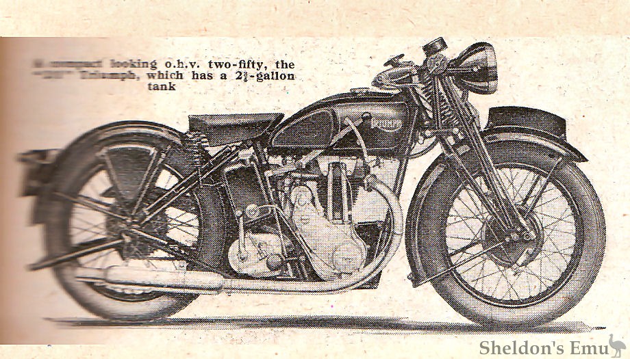 The compact-looking o.h.v. two-fifty, the "250" Triumph, the which has a 2¾ gallon tank.