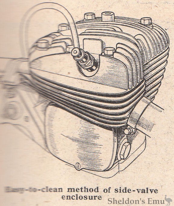 The big single side-valve model is a machine specially suitable for sidecar work. The frame is particularly sturdy and the engine, with its enclosed tappets and valves and detachable alloy head (with 14 mm plug}, is of the most up-to-date side-valve type.