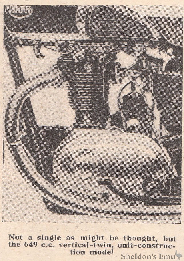 Not a single as might be thought, but the 649 c.c. vertical-twin, unit-construction model