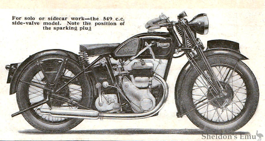 For solo or sidecar work - the 549 c.c. side-valve model. Note the position of the sparking plug