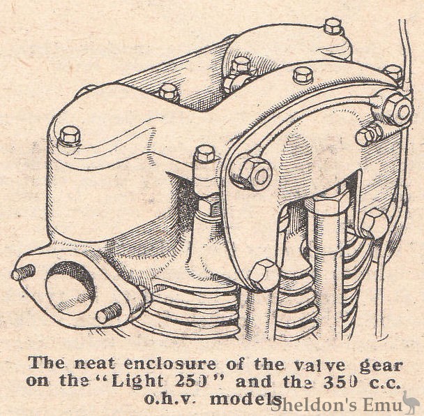 The neat enclosure of the valve gear on the "Light 250" and the 350 c.c. o.h.v. models