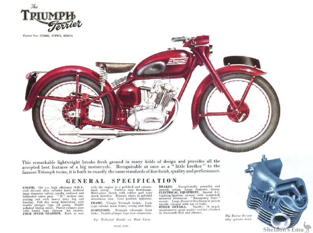 This remarkable lightweight breaks fresh ground in many fields of design and provides all the accepted best features of a big motorcycle. Recognisable at once as a "little brother "to the famous Triumph twins, it is built to exactly the same standards of fine finish, quality and performance.