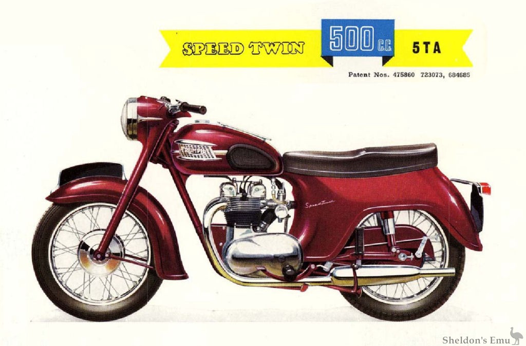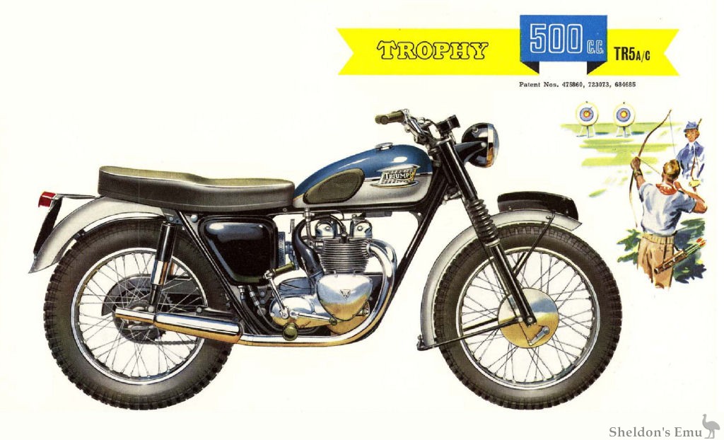 TR5A Specification as above but detachable headlamp replaces nacelle unit and standard sports mudguards are fitted front and rear.