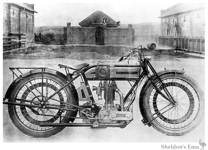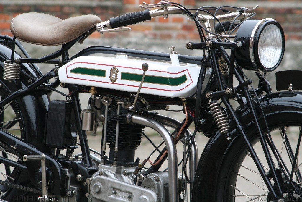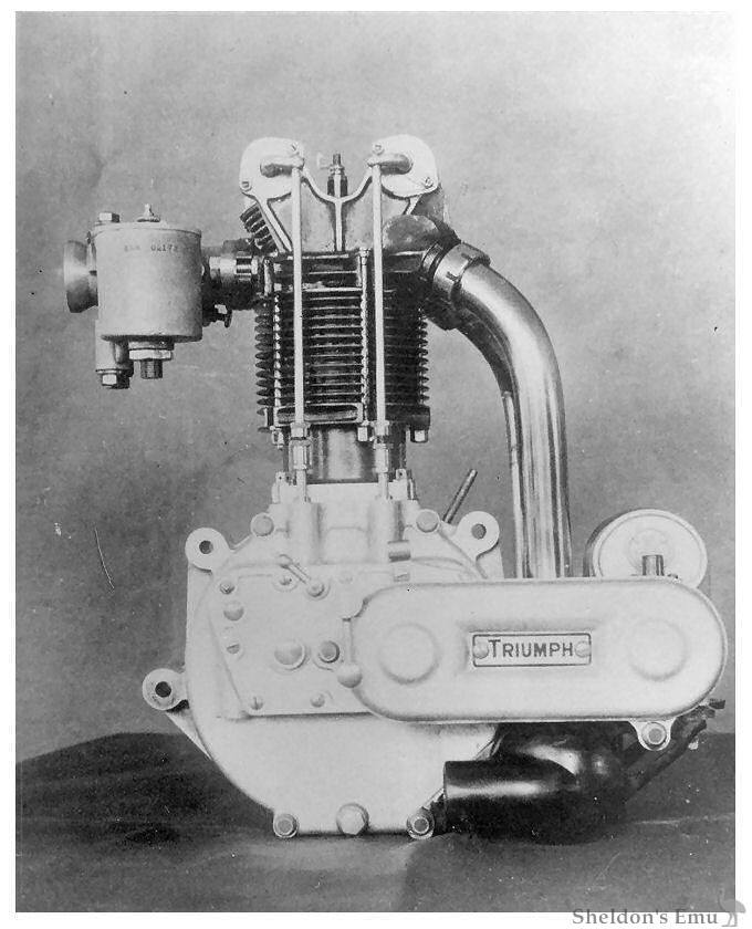 After WWI Harry Ricardo was joined by rider and aviator Frank Halford who had competed on Ricardo's SV Triumphs. Based on his previous success with their engines, Ricardo was commissioned by Triumph to design a new powerplant, the chosen result being based on the existing Model H, retaining the original bore and stroke (80.9 x 97 mm) but with a much-modified top end. It had a four-valve head and many other features quite advanced for the day. Early versions had the SD frame and forks which were simply not up to the task, particularly given that the new engine delivered as much power as an average car.
