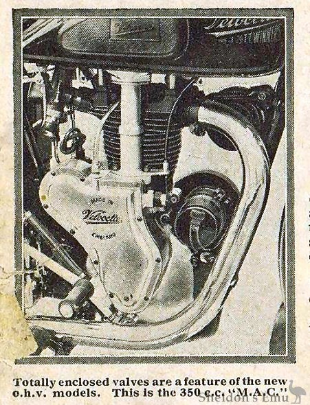 The frame is of the cradle type, and both models are of typical Velocette excellence. The price of the three-fifty (M. A. C.) is £49 10S.