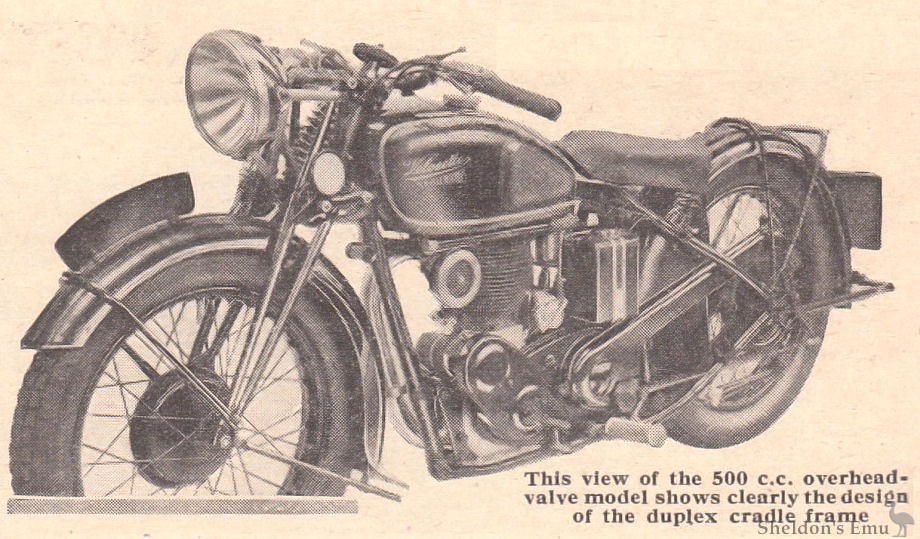 This view of the 500 c.c. overhead-valve model shows clearly the design of the duplex cradle frame.