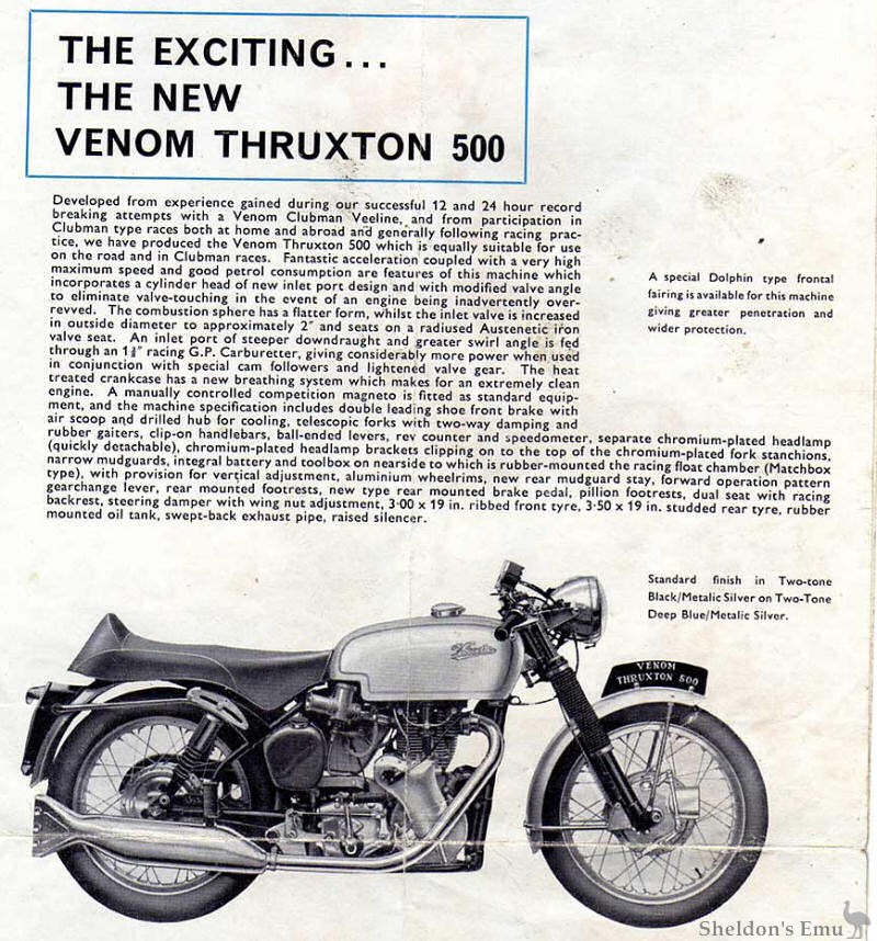 Developed from experience gained during our successful 12 and 24 hour record breaking attempts with a Venom Clubman Veeline,.and from participation in Clubman type races both at home and abroad and generally following racing practice. we have produced the Venom Thruxton 500 which is equally suitable for use on the road and in Clubman races.