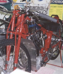 In the early days of dirt-track racing Messrs. Comerford-Wallis Engineering Co.Ltd., of Thames Ditton, Surrey, produced the Wallis Dirt-track Special, a machine which was used to a considerable extent. It was designed to take almost any standard racing engine of 350cc. or 500cc. Outstanding features in its design were the short wheelbase frame, embodying the Wallis patent lug wherever great strength was required, a special design of racing forks with a very short movement, and the provision of nuts requiring only two spanner sizes for the whole machine.