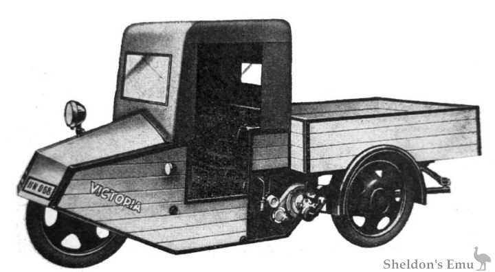 The Victoria factory produced Lastendreiräder (cargo tricycles) from 1925 to 1936. In 1934 they introduced a three-wheel delivery van (Dreirad-Eillieferwagen) powered by a 175cc fan-cooled two-stroke mounted below the cabin in front of the left rear wheel. It had a payload of 250kg and a top speed of 45 km/h. It was not widely acclaimed for its beauty.