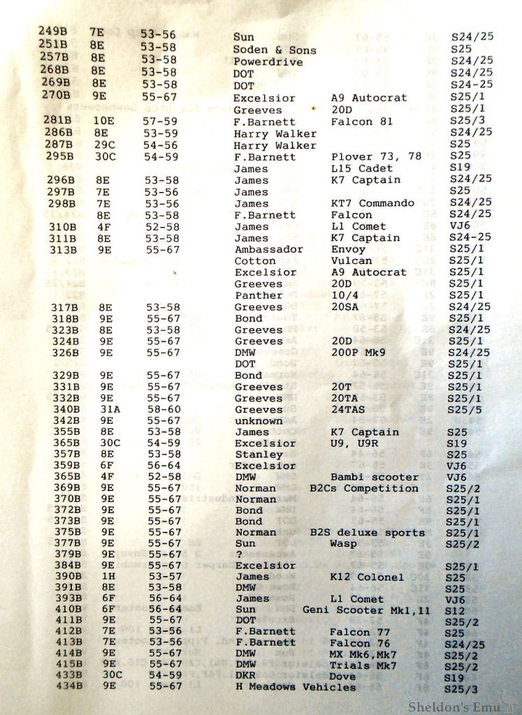 295B 30C 3 Speed Francis-Barnett models 73, 78 1956-1959
