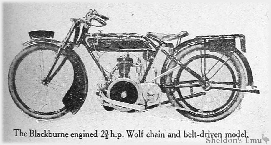 The latest name to become associated with the Blackburne 350 c.c. engine is the Wolf, a new model of which, embodying this engine, is shown above.