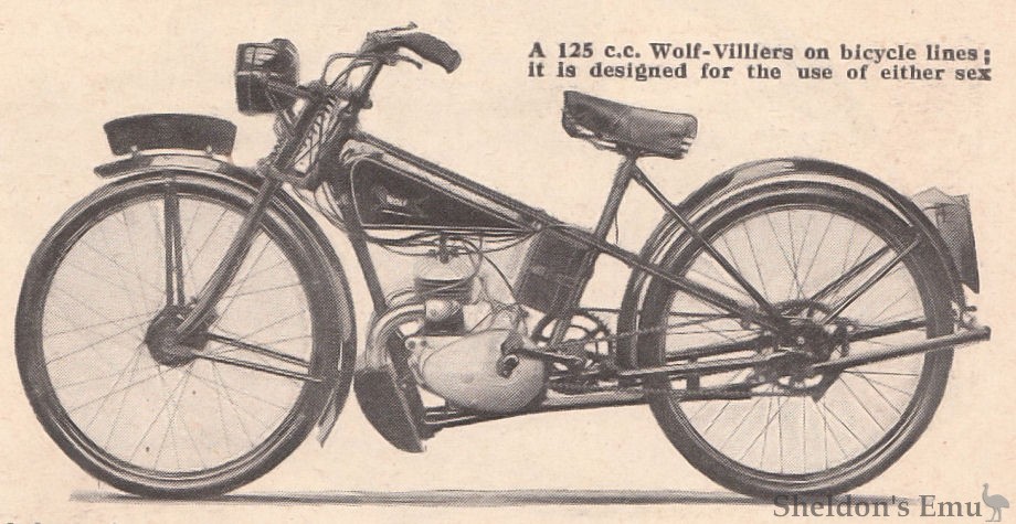 A 125 c.c. Wolf-Villiers on bicycle lines ; it is designed for the use of either sex