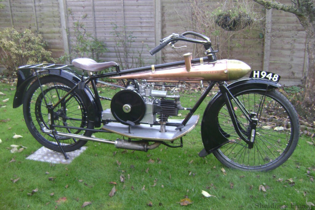 John Wooler built his first motorcycle in 1909, and after WWI he built horizontally-opposed inline twins which featured rear suspension and most unusual fuel tanks. Production ceased during the years 1930 to 1947, after which he produced a quite remarkable flat four. Wooler died in 1955, and the story of the wonderful Wooler motorcycle ended.