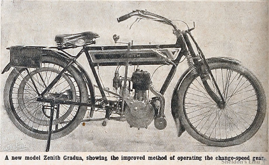 A new model Zenith Gradua, showing the improved method of operating the change-speed gear.