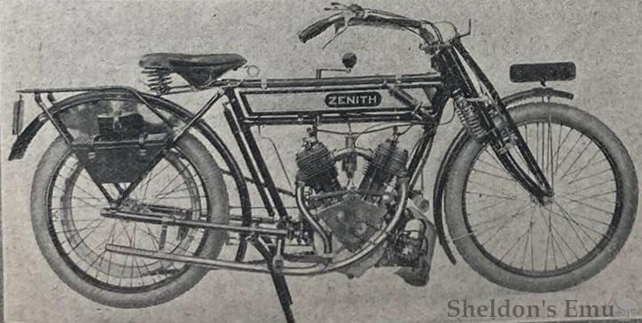 6 h.p. Zenith-Gradua showing new tool case, mudshield, and long exhaust pipe extended to rear hub.