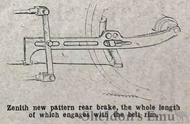 Zenith new pattern rear brake, the whole length of which engages with the belt rim.