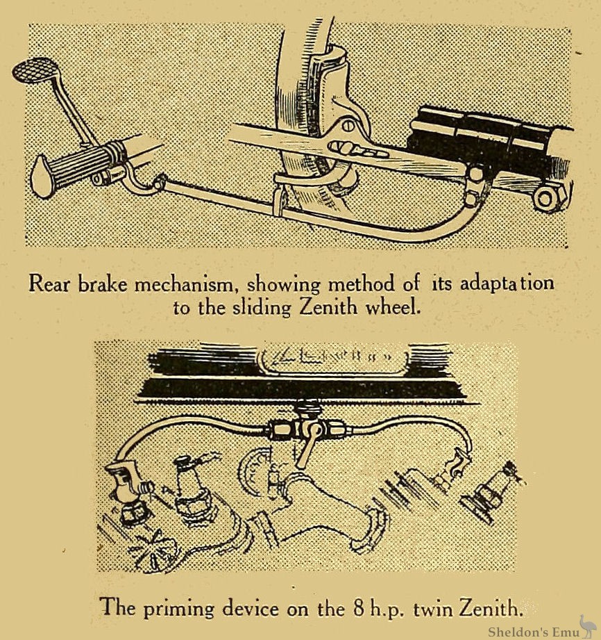 Rear brake mechanism, showing method of its adaptation to the sliding Zenith wheel.