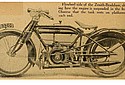 A fast machine requires good steering, good springing, and good brakes. The new Zenith frame is excellently balanced, and we could not wring the least symptom of a wobble out of it at a speed estimated at 65 m.p.h. in the absence of a positive meter. The saddle is so well insulated by the makers' special spring mounting that jars from the rear wheel are only felt on really atrocious going.