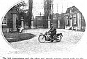 On the road the machine is simply charming. It starts up instantaneously, is capable of from 5 to 65 m.p.h. on top gear, evinces splendid acceleration on the lower ratios, and runs at about 72 m.p.g. when ruthlessly "hogged," greater economy being possible at a slower speed With a 500 c.c. engine and a top gear of 3½ to 1 , speed can be obtained without resorting to high revs., and a smoother running "hogbus" would be difficult to find. If revs are utilised, as they must be up very steep hills when the bottom gear is higher than a conventional middle, no vibration arises, for the engine is well balanced. Many air-cooled engines emit a distressing mechanical scream when they are freely revved, but the crescendo of the exhaust remains the chief - indeed, almost the only - noise of the Zenith-Bradshaw, when it is being pushed.